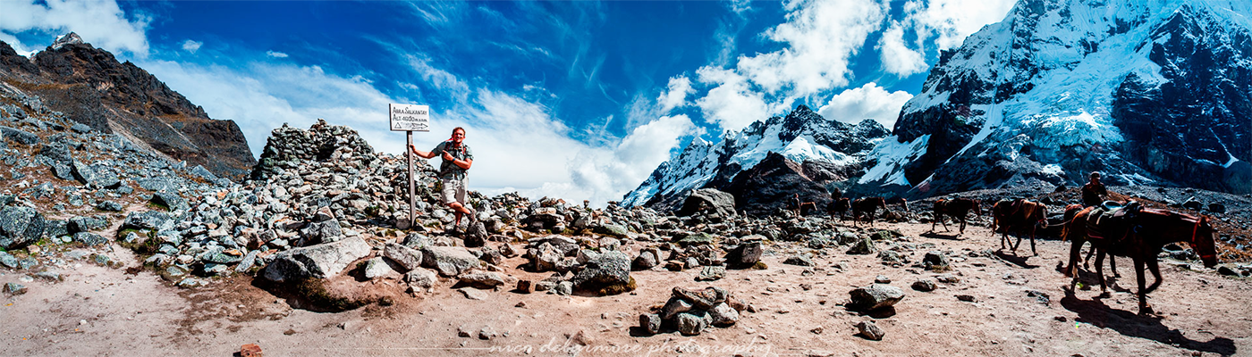 El día empieza a las 05:00 a.m. y disfrutaremos de un buen desayuno para prepararemos y emprender la caminata más difícil del camino, pondremos en orden nuestro equipaje y caminaremos por 1 hora aproximadamente hasta Salkantaypampa a 4,100 m aquí tendremos un breve descanso y seguiremos caminando en forma ascendente por 1 hora hasta el lugar de Soyrococha 4,400 m momento ideal para descansar, rehidratarnos y disfrutar del snack, el camino continua por 1 hora más hasta el punto más alto de la caminata el Abra Salkantay 4,632 m el punto más alto esta ubicado entre los 2 imponentes nevados de Humantay 5,917 m y Salkantay 6,271 m “La Montaña Salvaje» en el idioma nativo de Quechua.